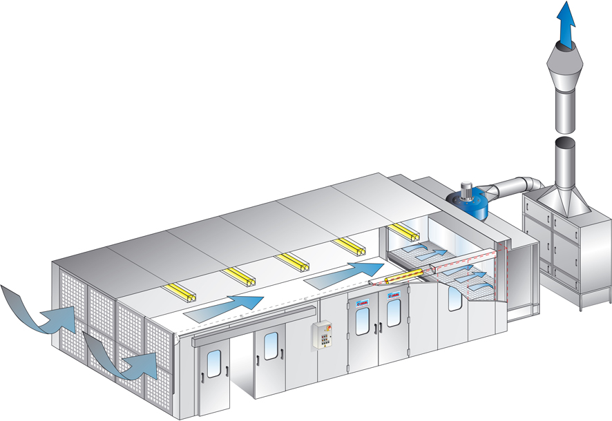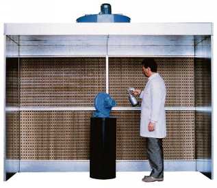 Spritzwände mit Trockenfilter oder Wasserberieselt